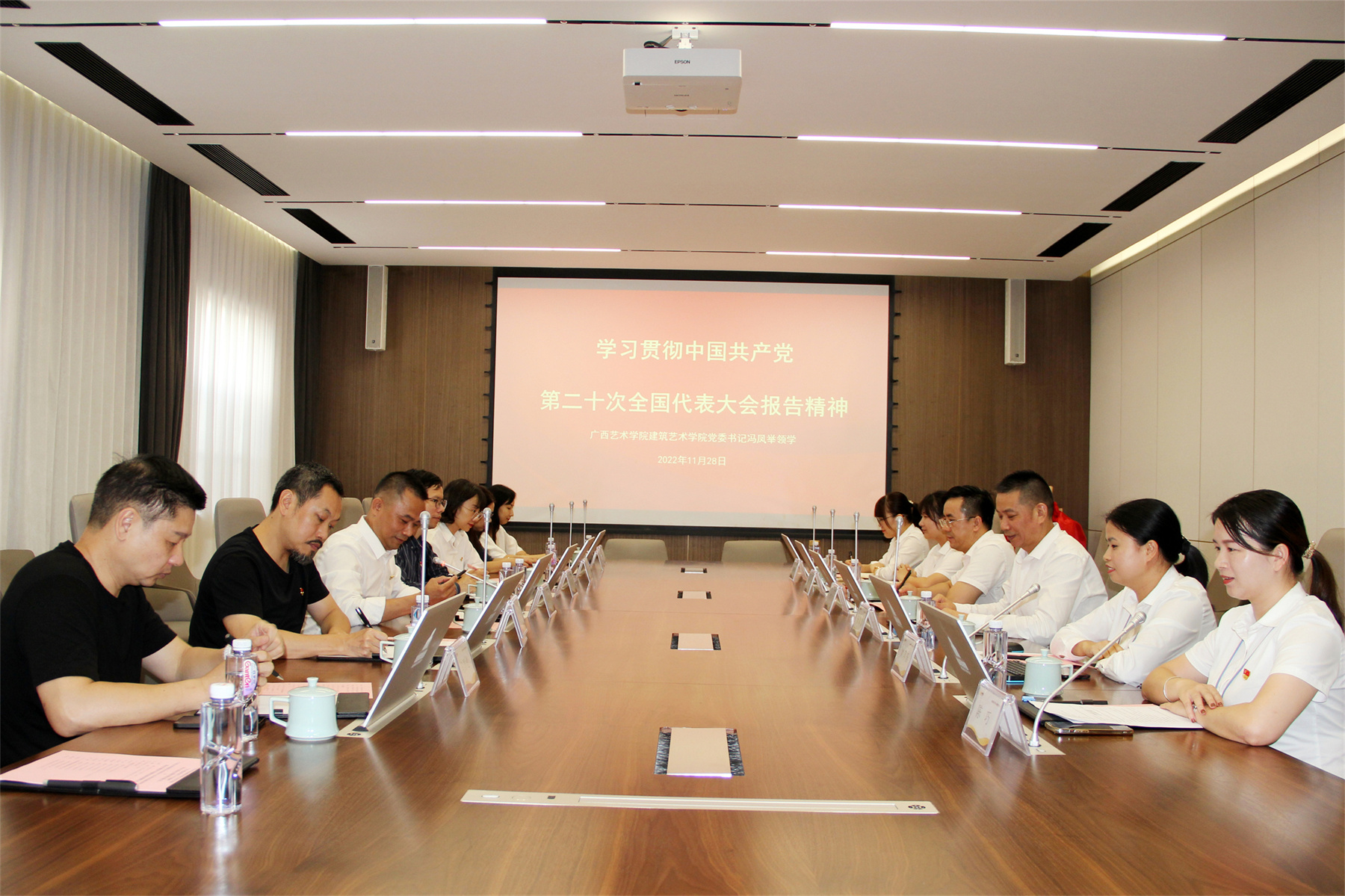 廣西藝術學院建筑藝術學院黨委書記馮鳳舉領學了二十大精神學習。與會全體黨員均表示,將切實把思想和行動統(tǒng)一到深入學習貫徹黨的二十大精神上來,把堅定擁護‘兩個確立’、堅決做到‘兩個維護’落實到日常工作,立足本職崗位,實干擔當。