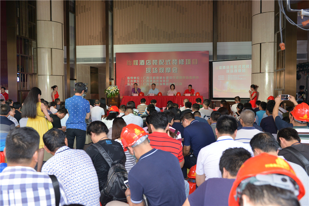 2017年9月7日下午,廣西本土企業(yè)首個(gè)裝配式裝修項(xiàng)目觀摩會(huì)在怡程酒店項(xiàng)目現(xiàn)場舉行。廣西華輝裝飾集團(tuán)是怡程酒店的裝修施工單位,憑借著先進(jìn)的施工管理水平和精湛的技術(shù)工藝,該項(xiàng)目的裝配式裝修技術(shù)運(yùn)用和施工質(zhì)量得到了主管部門和業(yè)主的高度肯定,被選為裝配式裝修觀摩項(xiàng)目。