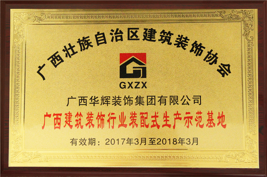 3月,華輝集團(tuán)榮獲“廣西建筑裝飾行業(yè)裝配化生產(chǎn)示范基地”、“廣西建筑裝飾工程優(yōu)質(zhì)獎(jiǎng)”、“廣西建筑裝飾行業(yè)先進(jìn)企業(yè)”等多個(gè)榮譽(yù)稱號。