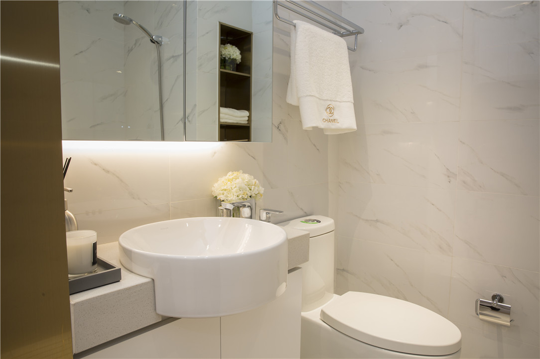 ▲衛(wèi)生間干濕分離設(shè)計(jì),將洗漱、洗浴功能有效分區(qū),合理的收納讓空間更加簡潔有序。