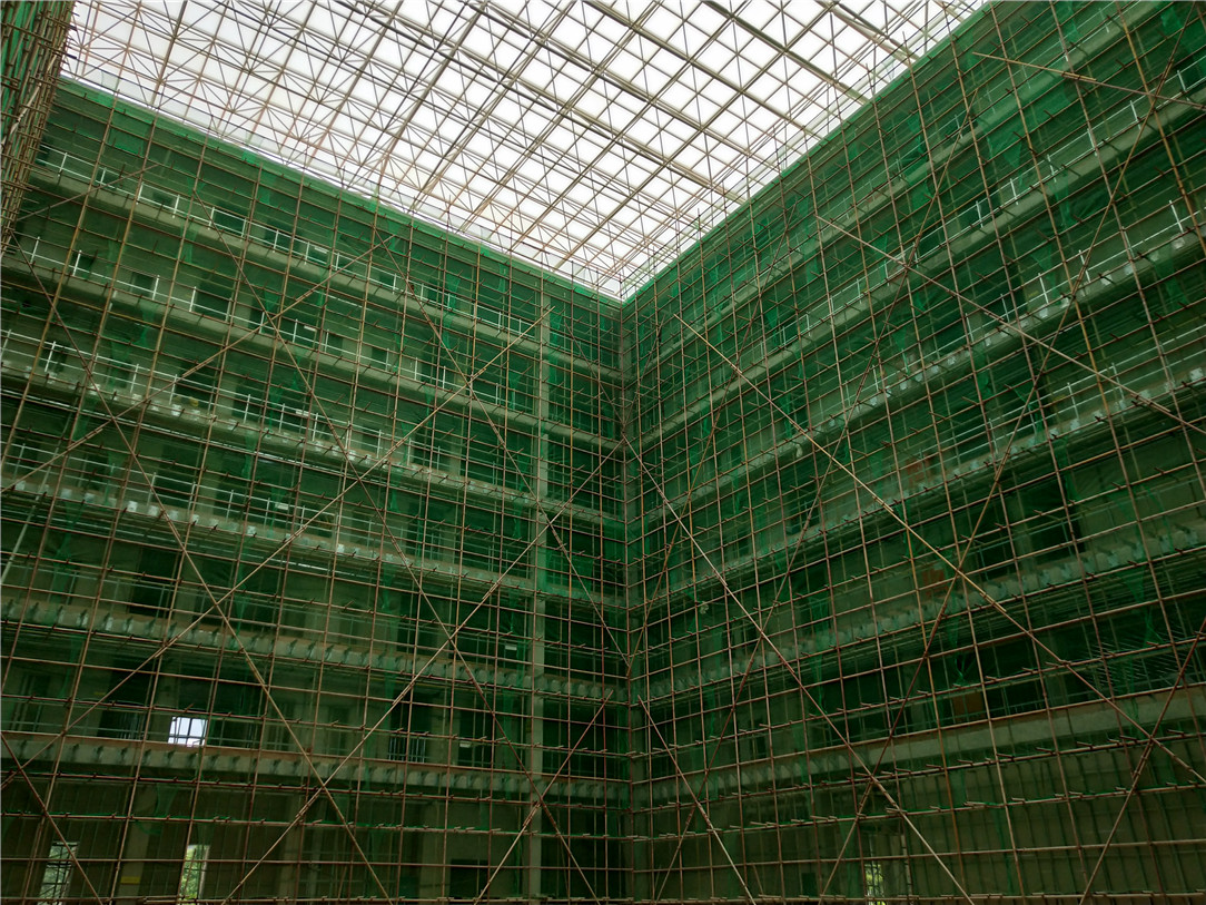 ▲腳手架鋼管順直、架體牢固,安全防護到位