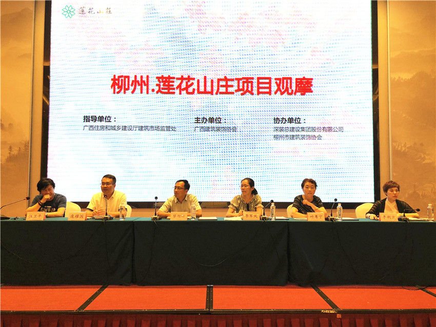 8月17日下午,由廣西住房和城鄉(xiāng)建設(shè)廳建筑市場監(jiān)管處指導(dǎo),廣西建筑裝飾協(xié)會主辦,深裝總建設(shè)集團(tuán)股份有限公司、柳州市建筑裝飾協(xié)會共同協(xié)辦的蓮花山莊裝修工程現(xiàn)場觀摩活動順利舉辦。