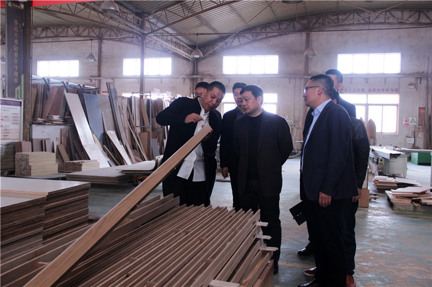 ▲楊景忠董事長(zhǎng)向楊綠峰副廳長(zhǎng)介紹裝配式固裝生產(chǎn)工藝
