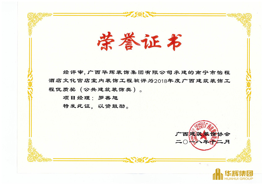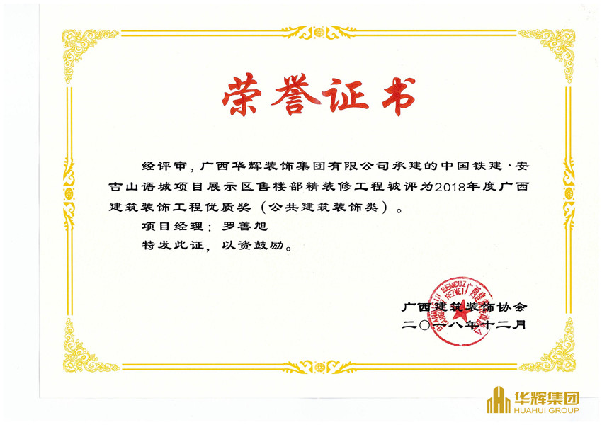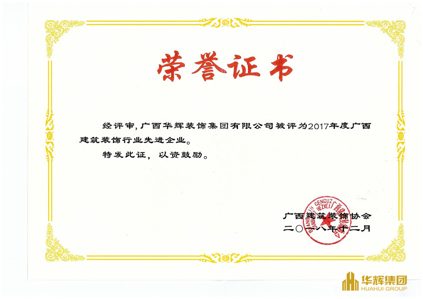 華輝裝飾集團(tuán)自加入廣西建筑裝飾協(xié)會后,在協(xié)會的指引幫助下,深耕裝飾工程領(lǐng)域,實(shí)力不斷增強(qiáng)。