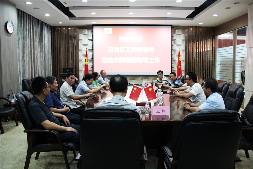 2019年7月2日,自治區(qū)工商聯(lián)吳振秋副主席、許丹部長,廣西江蘇商會施瑞明執(zhí)行會長以及商會副會長、秘書處一行蒞臨華輝集團(tuán)指導(dǎo)工作。