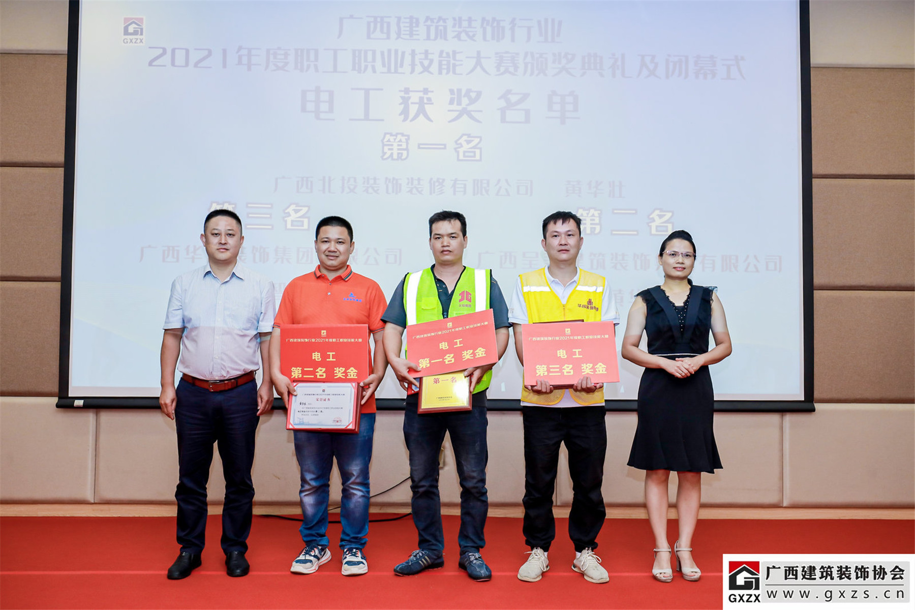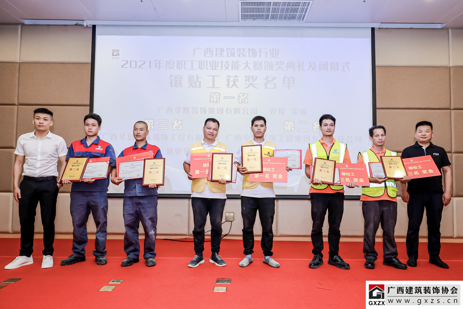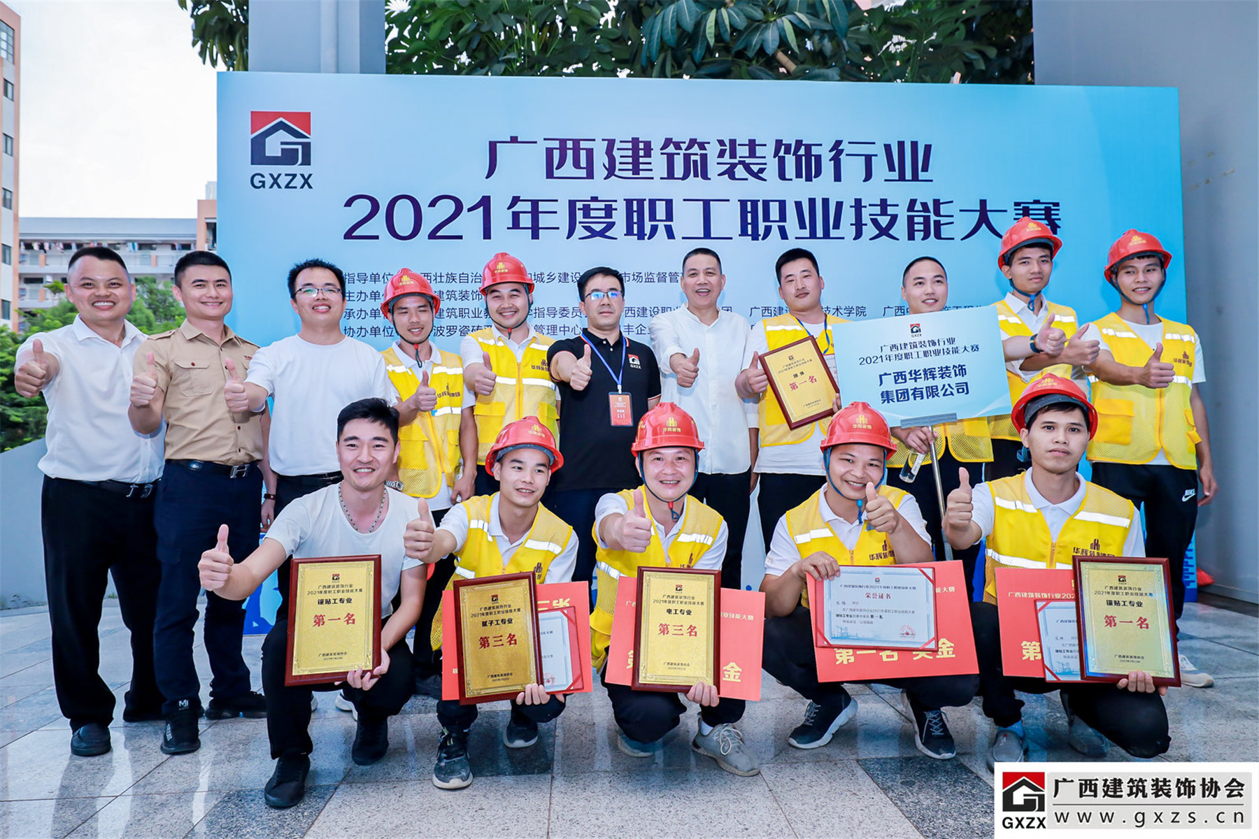 2021年7月23日,廣西建筑裝飾行業(yè)2021年度職工職業(yè)技能大賽在廣西建設職業(yè)技術學院舉行。華輝參賽選手榮獲團體第一名且綜合評分滿分100分、鑲貼工第一名、電工第三名、膩子工第三名的好成績。
