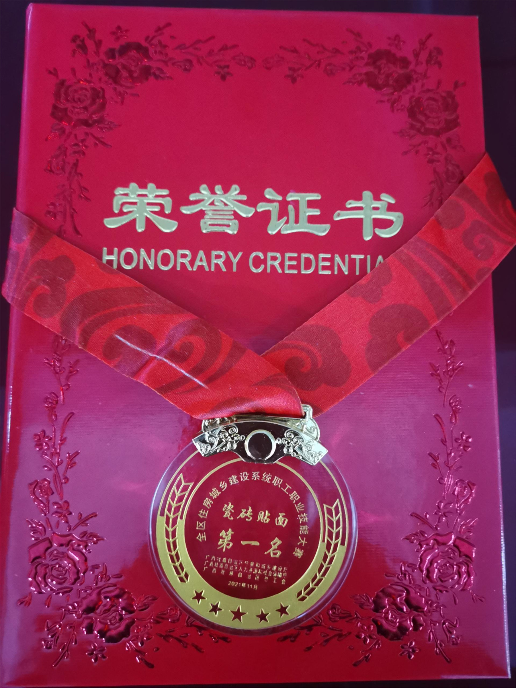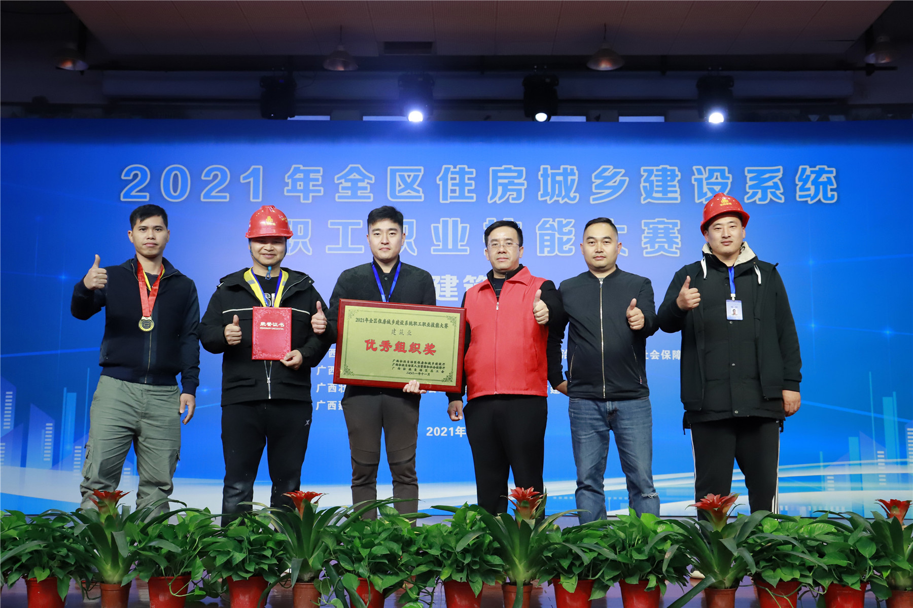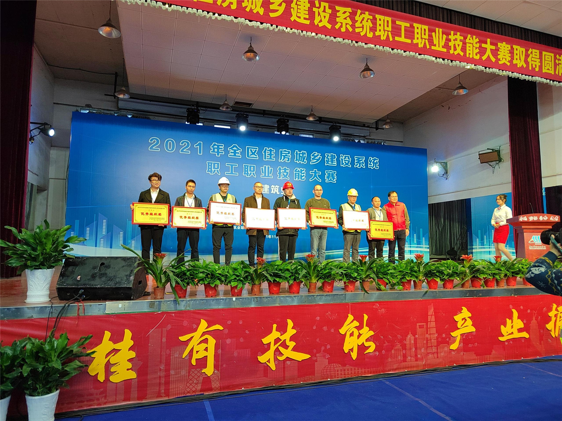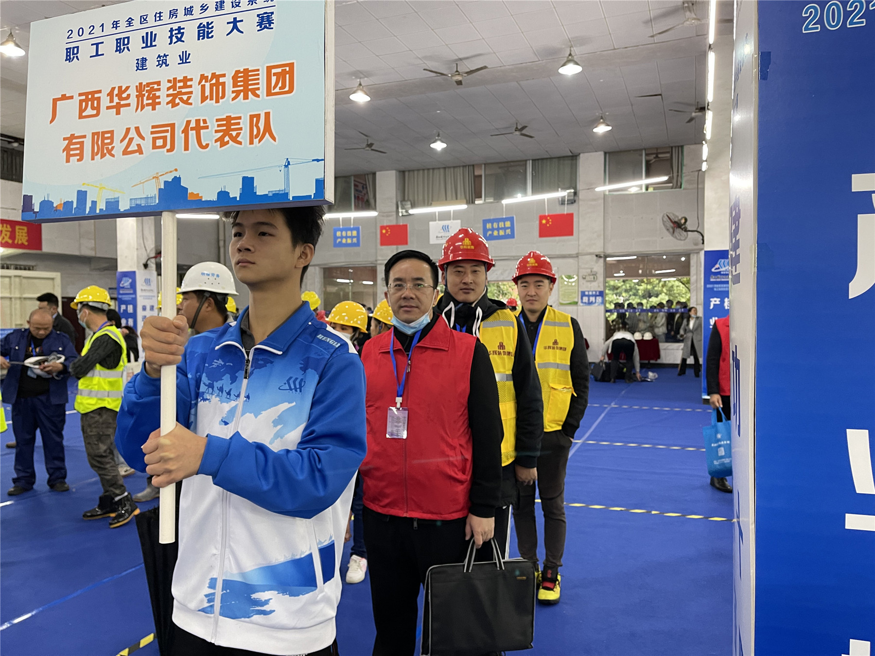 2021年11月17日,全區(qū)住房城鄉(xiāng)建設(shè)系統(tǒng)職工職業(yè)技能大賽在桂林落下帷幕。華輝集團參賽選手榮獲瓷磚貼面第一名的好成績,集團榮獲“優(yōu)秀組織獎”。