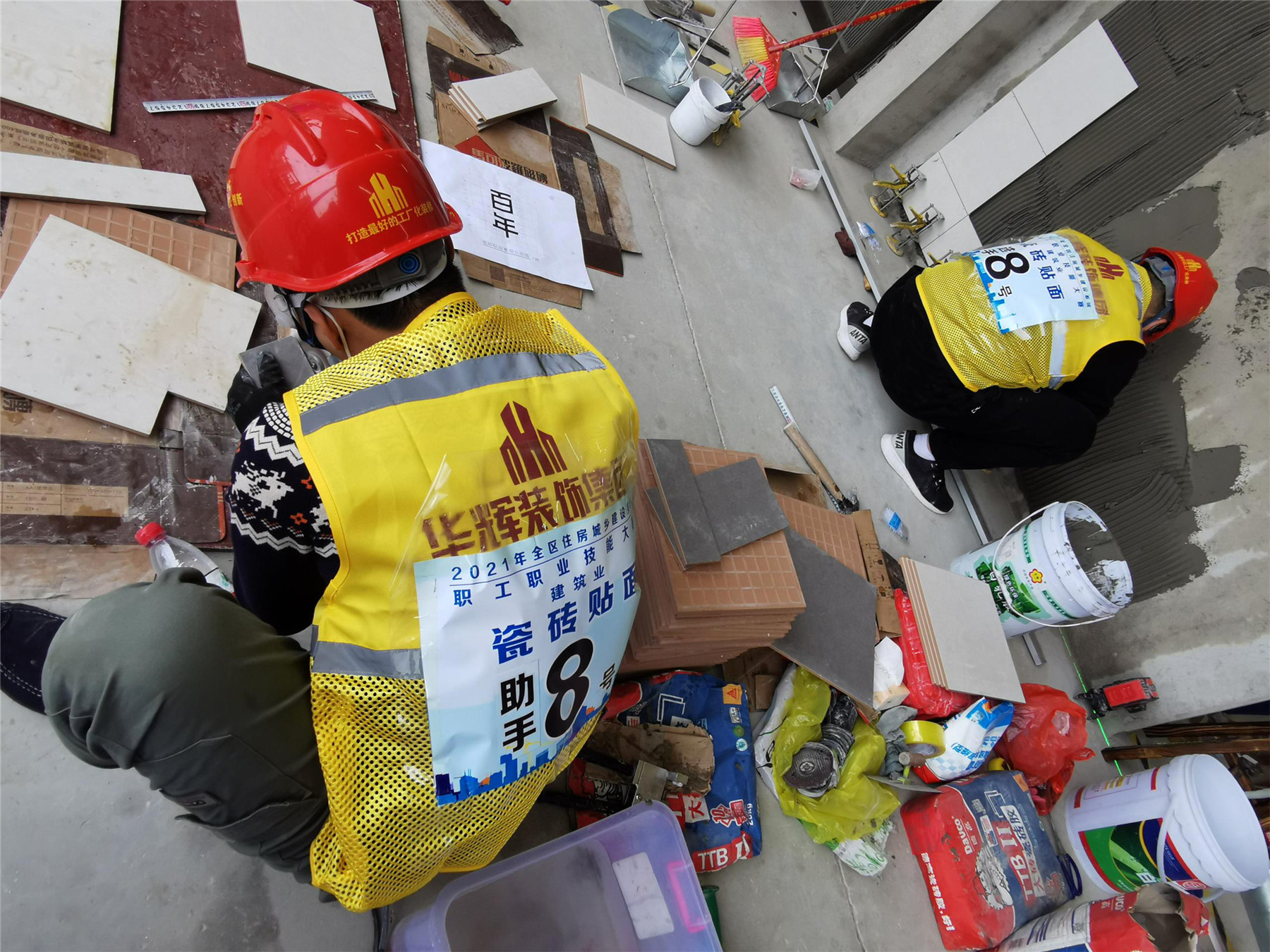 經(jīng)過兩天激烈的角逐,最終憑借扎實的基本功、過硬的心理素質(zhì)和優(yōu)異的臨場發(fā)揮,華輝參賽選手農(nóng)福、農(nóng)旭榮獲瓷磚貼面第一名,賽出了風(fēng)采,更充分展現(xiàn)了華輝人精益求精、勇于拼搏、銳意進取的優(yōu)秀品質(zhì)。