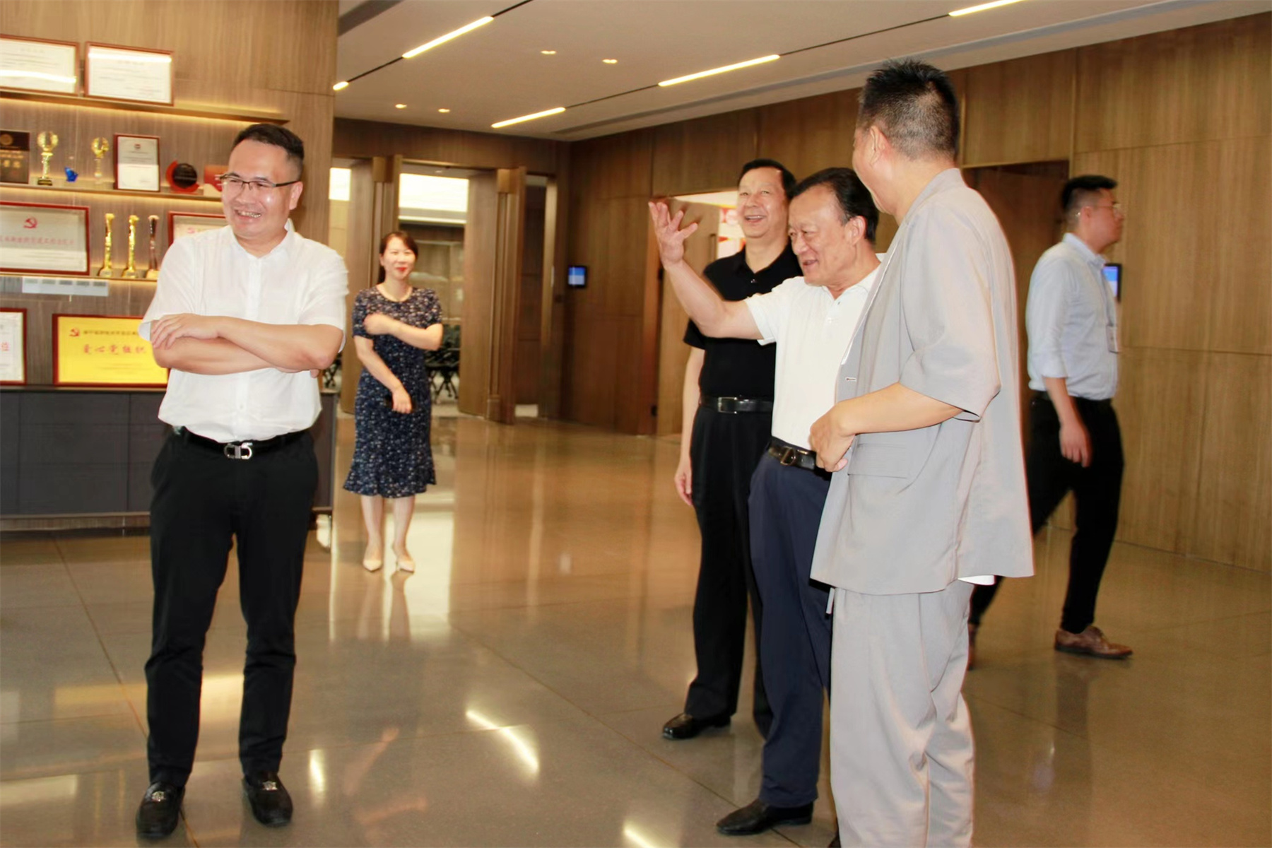 ▲王中奇會(huì)長(zhǎng)參觀華輝黨建長(zhǎng)廊