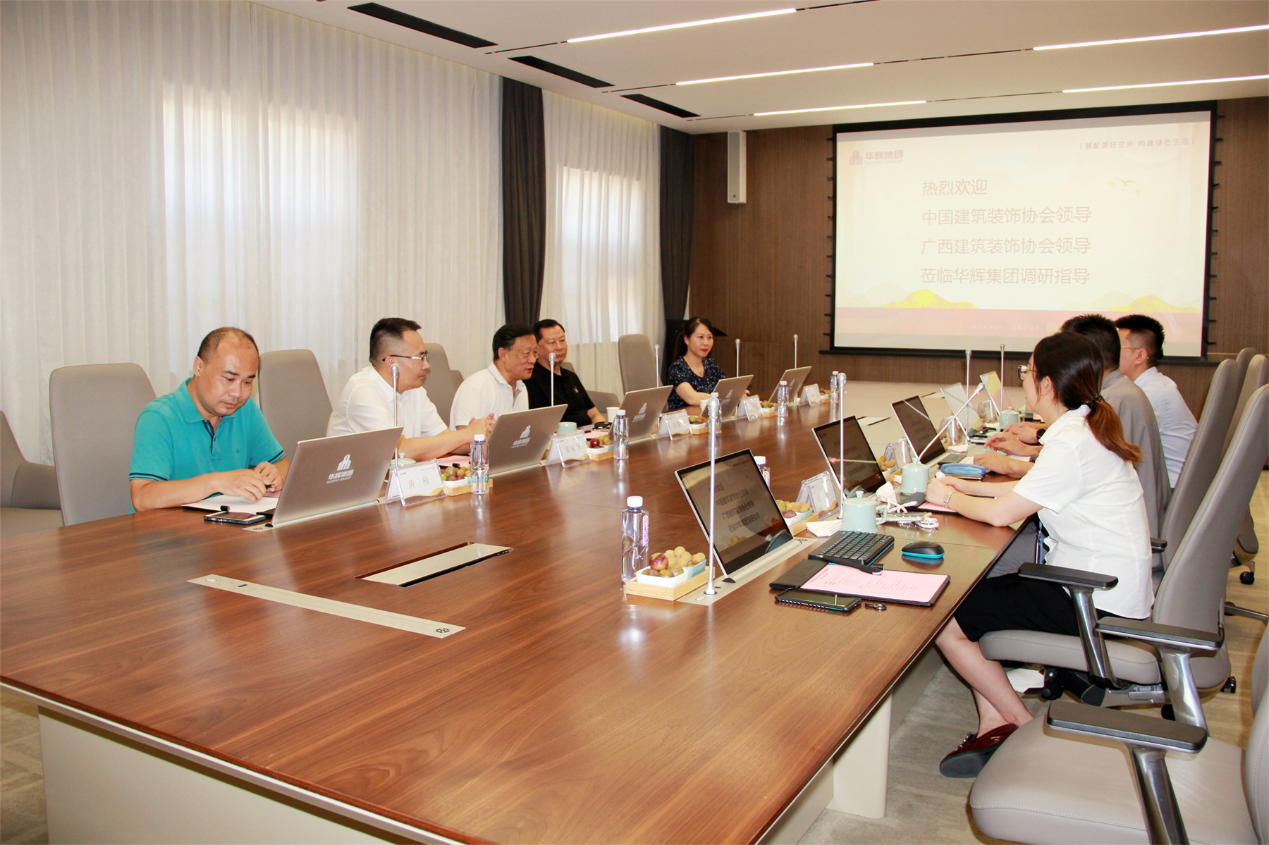 集團(tuán)董事長(zhǎng)楊景忠首先對(duì)劉曉一會(huì)長(zhǎng)、王中奇會(huì)長(zhǎng)一行的到來(lái)表示歡迎,表示:華輝集團(tuán)的發(fā)展,離不開(kāi)黨的政策,也離不開(kāi)中國(guó)建筑裝飾協(xié)會(huì)及社會(huì)各界的支持。華輝集團(tuán)將一如既往緊密圍繞“裝配美好空間,構(gòu)建綠色生活”的企業(yè)使命,開(kāi)拓進(jìn)取,用心打磨每一項(xiàng)精品工程,推動(dòng)企業(yè)高質(zhì)量發(fā)展。集團(tuán)副總裁楊彬就華輝發(fā)展概況、戰(zhàn)略規(guī)劃進(jìn)行專題匯報(bào)。