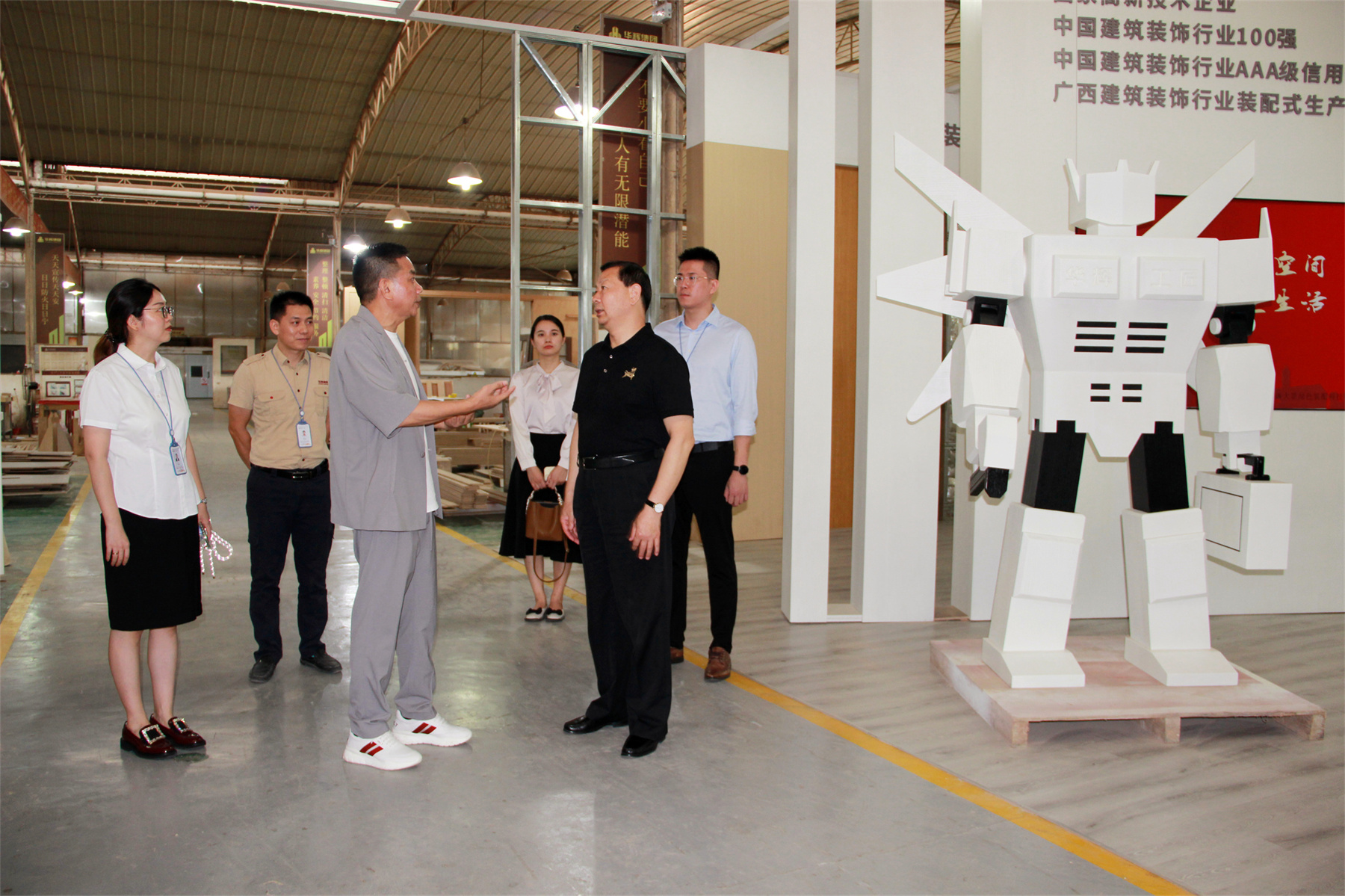 在參觀黨建活動(dòng)陣地時(shí),王中奇會(huì)長(zhǎng)對(duì)于華輝黨建和經(jīng)營(yíng)互促互贏的成績(jī)給予了高度肯定。在華輝裝配式裝修生產(chǎn)車間,王中奇會(huì)長(zhǎng)認(rèn)真聆聽(tīng)了技術(shù)人員介紹生產(chǎn)流程、工藝,鼓勵(lì)華輝繼續(xù)走創(chuàng)新發(fā)展道路,擴(kuò)大裝配式裝修的發(fā)展成果,推動(dòng)企業(yè)縱深發(fā)展。