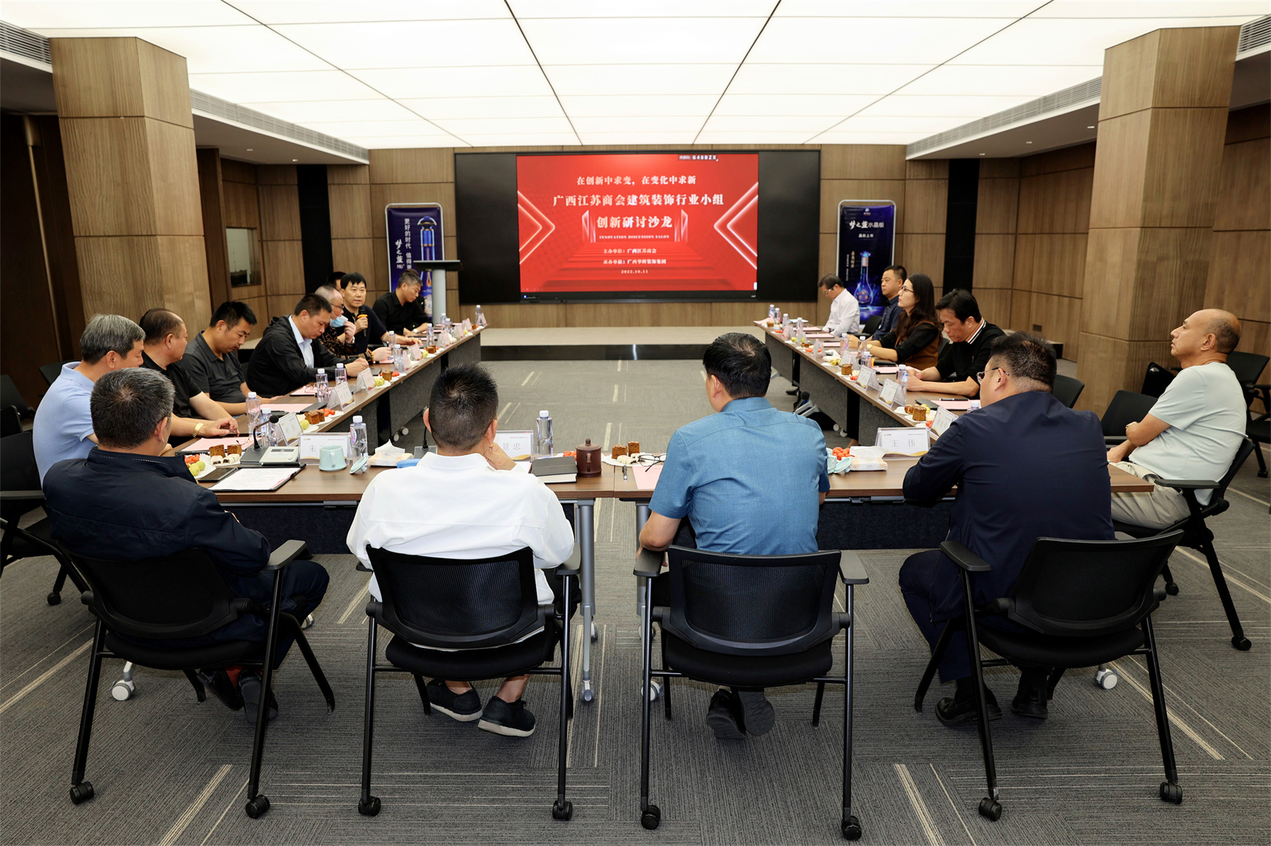 2022年10月11日,廣西江蘇商會建筑裝飾行業(yè)小組創(chuàng)新沙龍研討會在華輝舉辦。圍繞受新冠疫情嚴(yán)重沖擊影響的新形勢下,建筑裝飾行業(yè)的發(fā)展結(jié)構(gòu)特點(diǎn)、市場格局、競爭趨勢、行業(yè)企業(yè)“痛點(diǎn)”四個維度對產(chǎn)業(yè)現(xiàn)狀進(jìn)行交流、研討。會長施瑞明、執(zhí)行會長楊景忠、秘書長朱建平,商會黨支部書記、常務(wù)副會長王偉,常務(wù)副會長徐敦華、葉東,副會長許榮華、賈衛(wèi)平、陳忠和、王曉云,副會長趙玉清代表,理事楊衛(wèi)彬、馬紅芳、張軍,理事蔡青松代表以及相關(guān)會員等20多人參加。會議由秘書長朱建平主持。