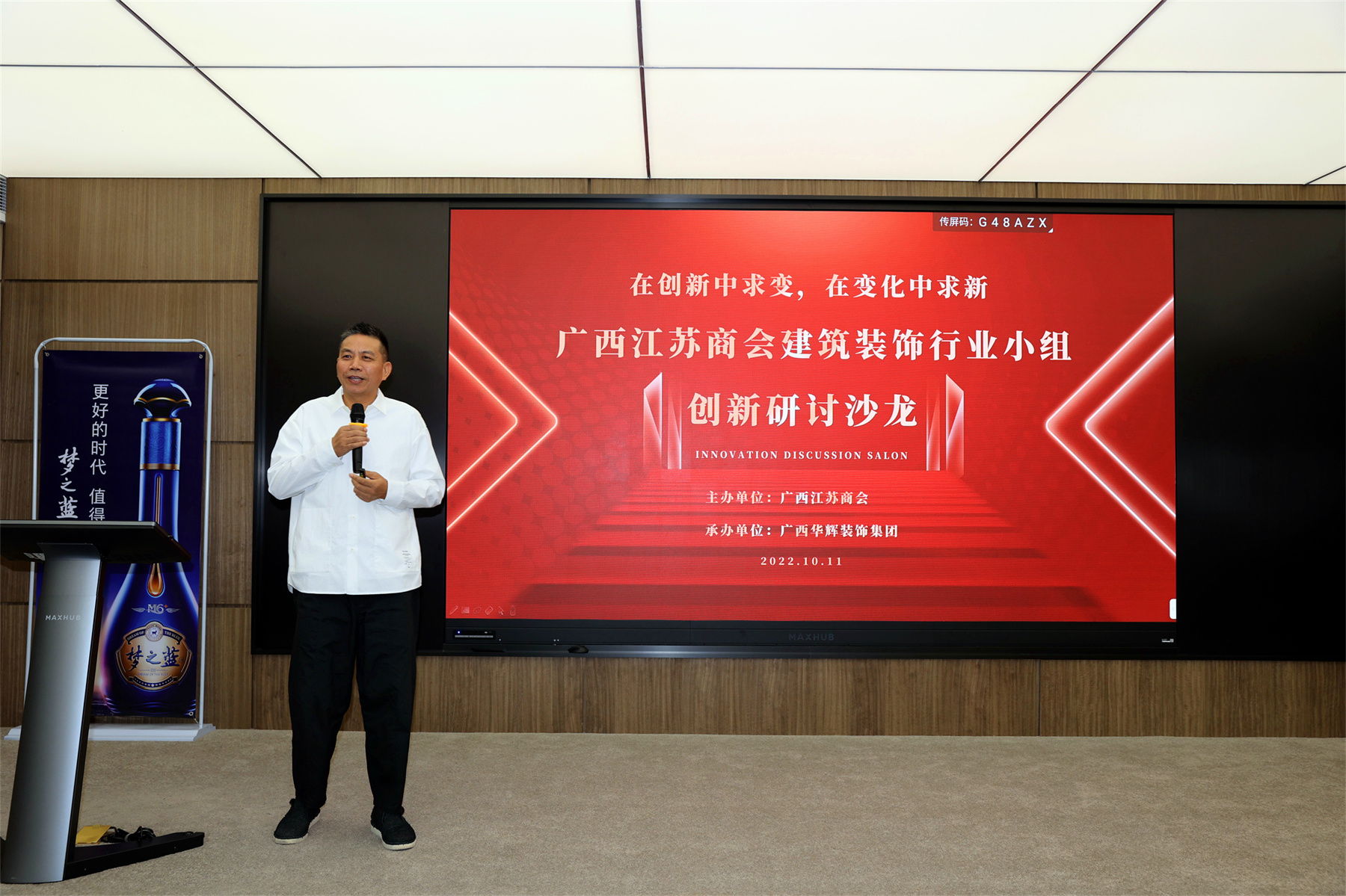 研討會上,首先由商會執(zhí)行會長、廣西華輝裝飾集團(tuán)董事長、商會建筑裝飾行業(yè)小組組長楊景忠致辭。他說,在喜迎黨的二十大勝利召開之際,我們相聚在華輝裝飾集團(tuán)舉辦沙龍研討會,作為商會建筑裝飾行業(yè)小組組長,感謝商會給予華輝承辦此次沙龍研討會的機(jī)會。歡迎大家來到華輝裝飾集團(tuán)。楊景忠指出,我們要共同努力,緊密結(jié)合廣西江蘇商會的建筑裝飾企業(yè)的發(fā)展特色,聚焦行業(yè)形勢、難點(diǎn)問題、創(chuàng)新熱點(diǎn),共同探討應(yīng)對之策,廣開思路、碰撞思想,搭建一個相互融通、共建互贏的創(chuàng)新平臺,推動企業(yè)持續(xù)健康發(fā)展,開創(chuàng)高質(zhì)量發(fā)展新局面,以實際行動迎接黨的二十大勝利召開。
