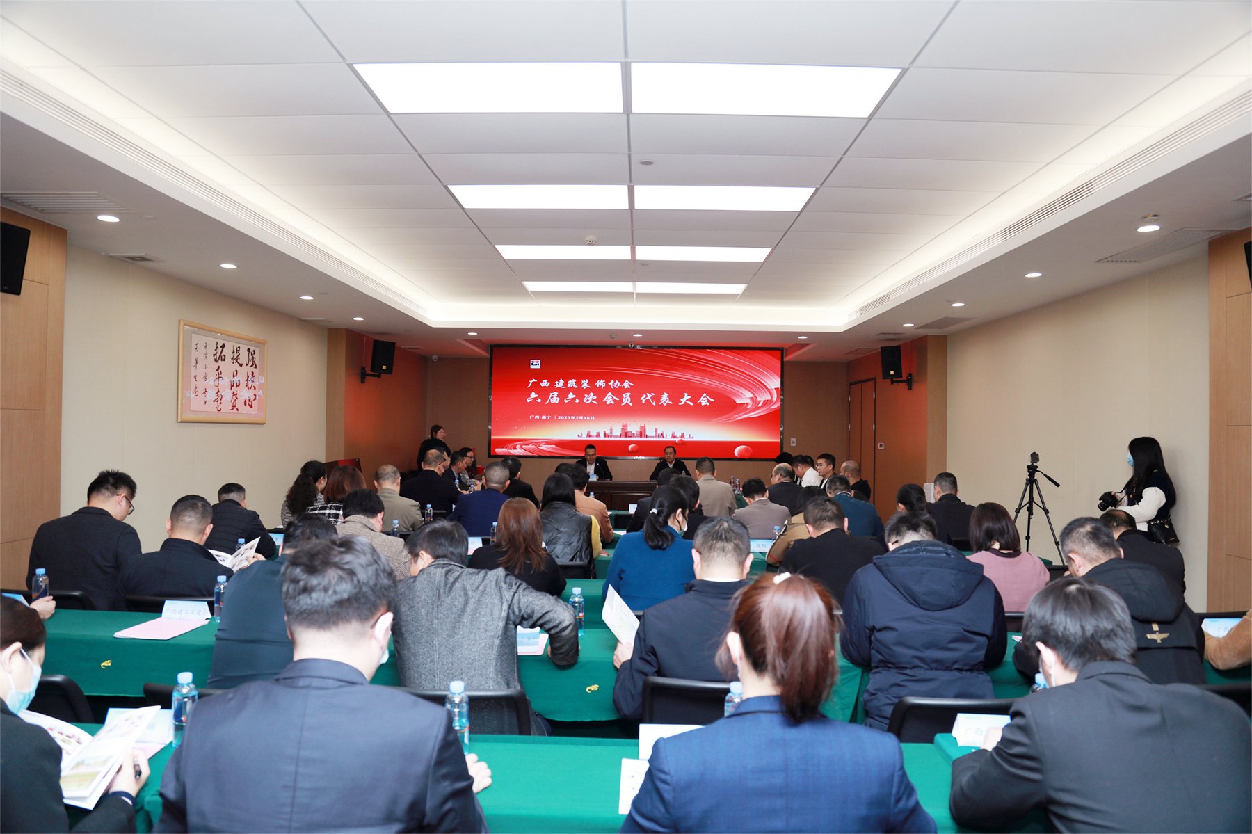 2023年2月16日,廣西建筑裝飾協(xié)會六屆六次會員代表大會在南寧成功召開。會議設(shè)主會場與分會場,主會場參會人員主要有六屆理事會班子成員、獲得2022年度廣西建筑裝飾工程優(yōu)質(zhì)獎企業(yè)代表、第一屆廣西建筑裝飾協(xié)會優(yōu)秀青年建筑裝飾設(shè)計師等約70人;部分會員單位在分會場全程收看會議視頻直播。會議邀請廣西住房和城鄉(xiāng)建設(shè)廳建筑市場監(jiān)管處黎旭標處長出席并致辭。會議由龐耀國會長主持。