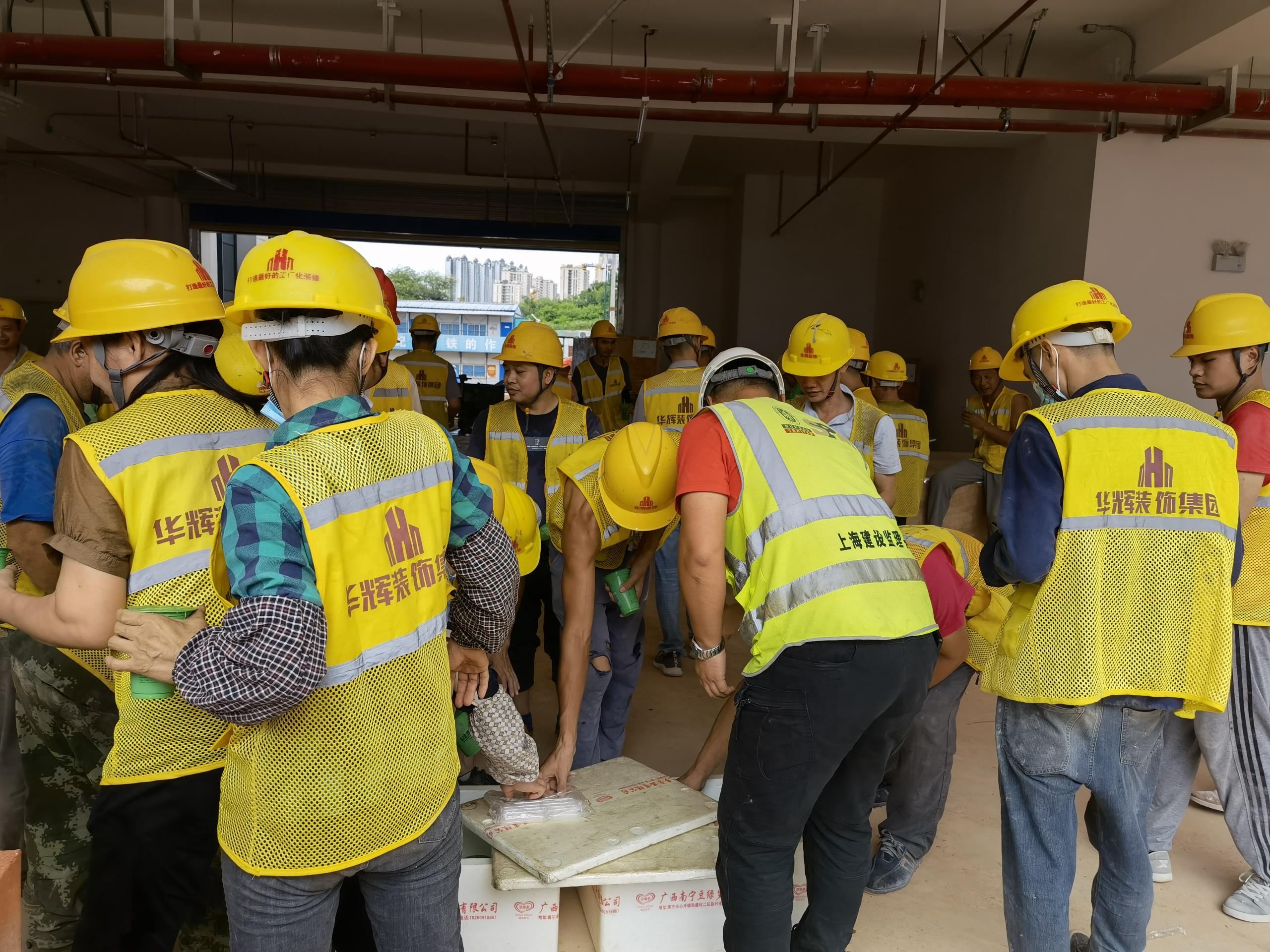 一份降暑涼茶、一份工傷預(yù)防宣傳手冊……傳遞的是廣西建筑裝飾協(xié)會對華輝一線人員的關(guān)愛。在項目現(xiàn)場,協(xié)會領(lǐng)導(dǎo)深入了解企業(yè)生產(chǎn)經(jīng)營、項目施工進度、安全生產(chǎn)等情況,將安全生產(chǎn)、工傷預(yù)防宣傳冊以及防暑清涼慰問品發(fā)放到工人手中。