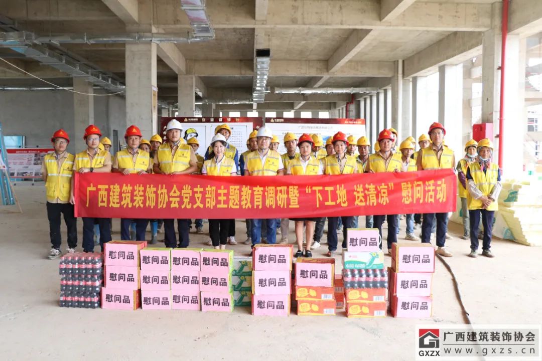 2023年6月8日,廣西建筑裝飾協(xié)會黨支部書記黃榆,組織支部黨員、入黨積極分子、秘書處工作人員一起前往華輝在建項目工地,與華輝黨支部共同開展“下工地 送清涼”慰問活動,向華輝一線勞動者送去“清涼慰問品”。