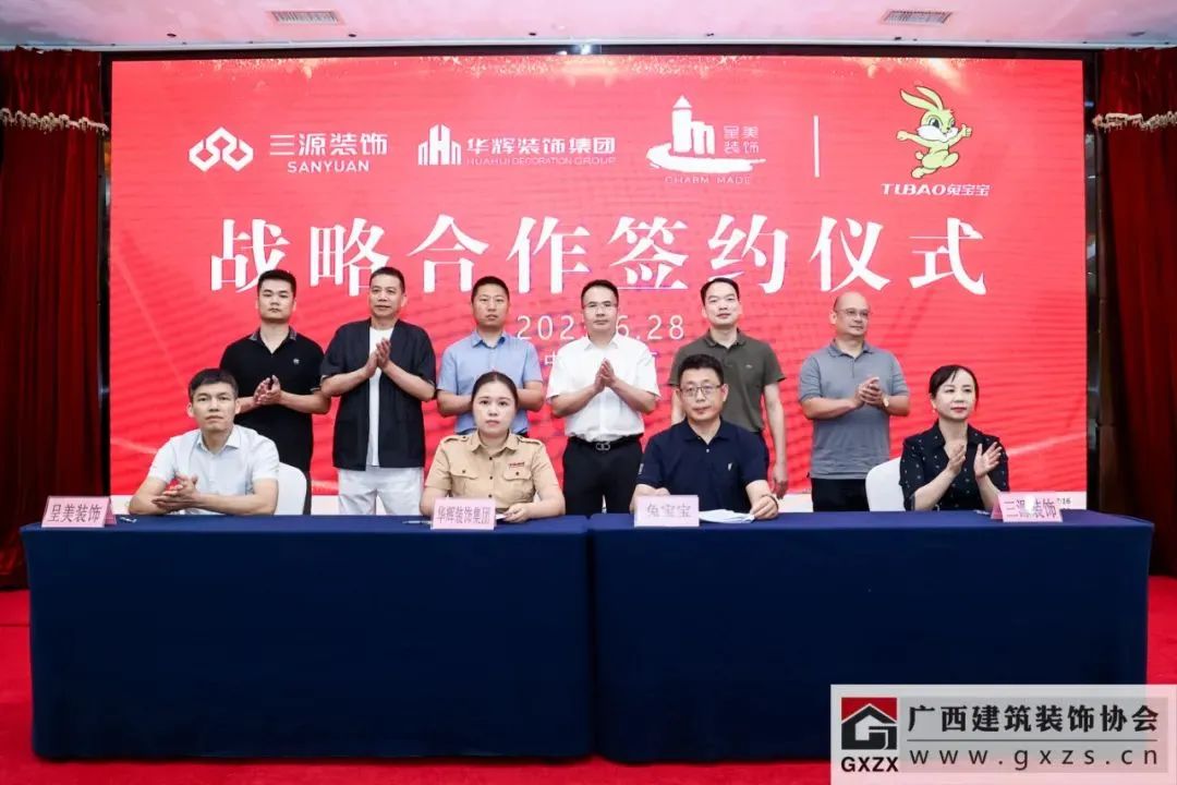 ▲廣西華輝集團(tuán)、三源公司、呈美集團(tuán)與德華兔寶寶材料簽約