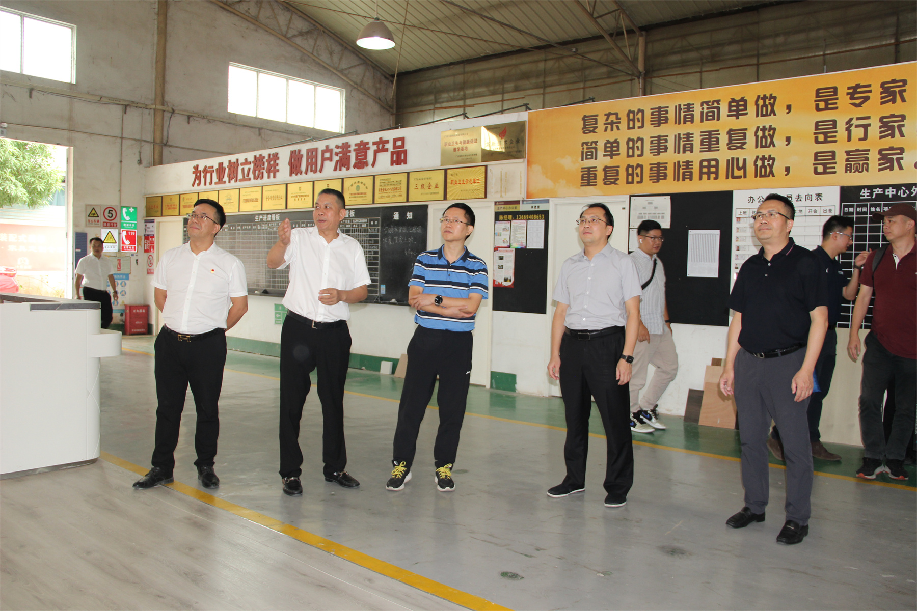▲潘國(guó)雄(左三)深入調(diào)研華輝生產(chǎn)車間