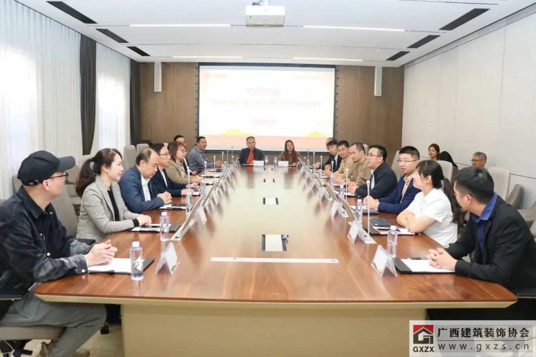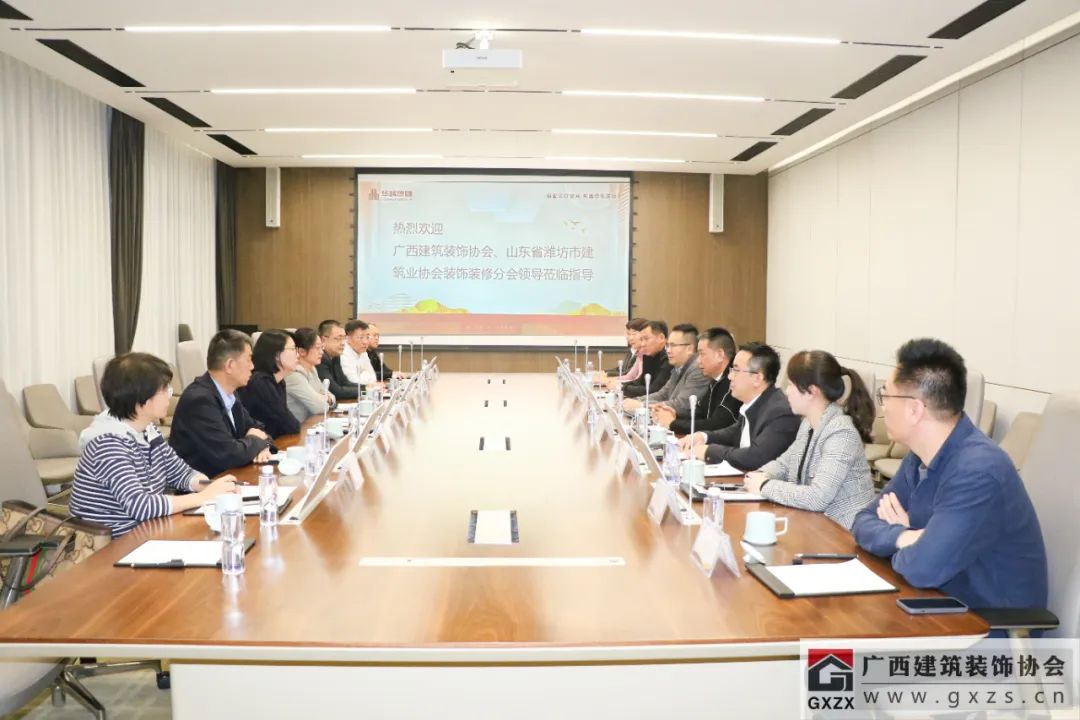 在與山東省濰坊市建筑業(yè)協(xié)會裝飾裝修分會一行的座談會上,廣西建筑裝飾協(xié)會副會長、華輝裝飾董事長楊景忠向濰坊市協(xié)會一行詳細介紹了華輝裝飾在企業(yè)管理、人才培養(yǎng)、創(chuàng)新機制方面的經(jīng)驗,雙方企業(yè)就裝配式裝修在兩地的發(fā)展情況和前景相互探討。隨后,華輝裝飾副總裁覃祖榮帶領參觀了華輝裝飾辦公大樓以及工廠,重點介紹了華輝裝飾在裝配式裝修工藝技術(shù)的發(fā)展應用。