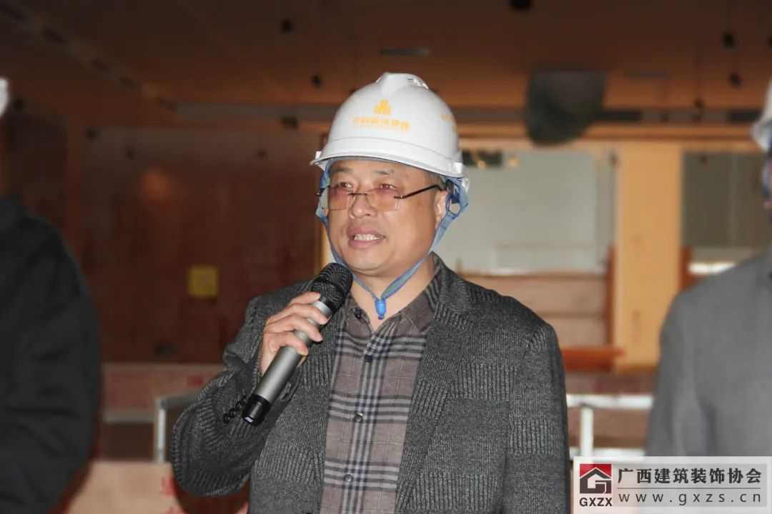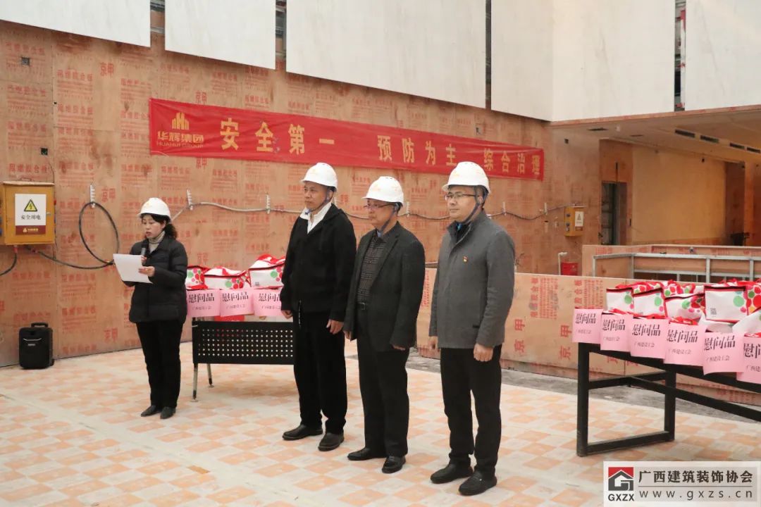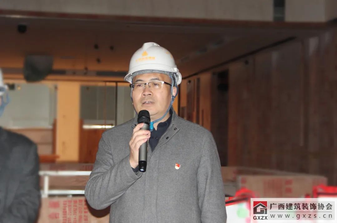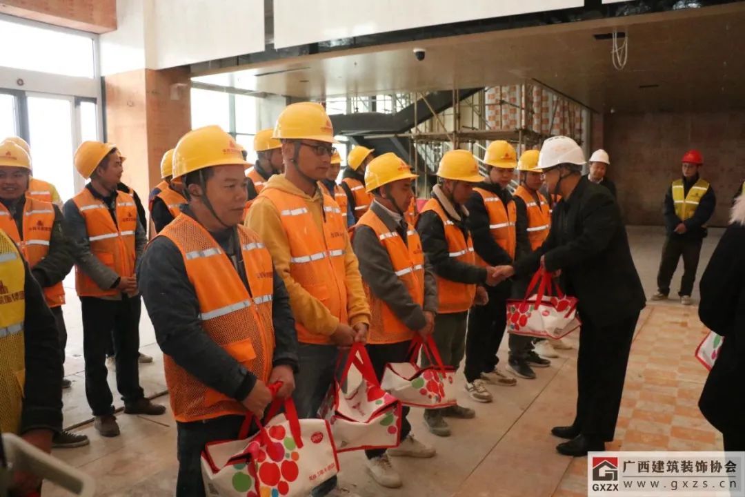 龐耀國在發(fā)言中提到,廣西建設工會作為自治區(qū)住房城鄉(xiāng)建設廳直屬單位,主要負責建設行業(yè)工會的宏觀指導工作,今天也是廣西建設工會首次來到裝飾工程項目現(xiàn)場開展慰問活動。多年來,廣西建設工會各級領導一直關注建筑裝飾行業(yè)的發(fā)展,尤其在裝飾行業(yè)職工職業(yè)技能培訓、技能競賽指導等方面給予了非常多的支持,對提高裝飾行業(yè)職業(yè)技能水平,強化人才培養(yǎng)等方面工作幫助很大。新年伊始,希望廣西建筑裝飾行業(yè)能夠繼續(xù)在廣西建設工會的指導和幫助下取得更大的進步,同時也不斷提高行業(yè)素質(zhì)和專業(yè)水準,培養(yǎng)和造就一支高素質(zhì)的人才隊伍,建造更多裝飾精品工程。