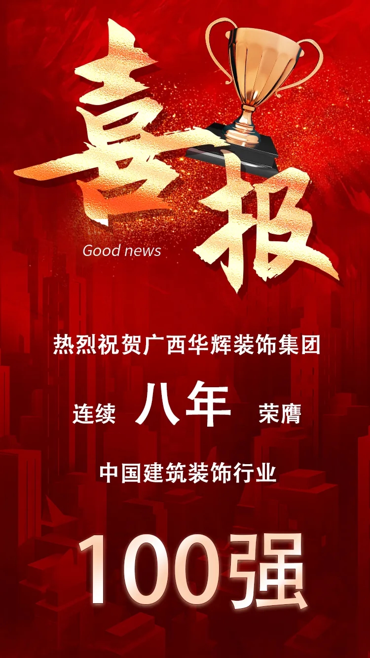 2024年12月10日,“波瀾壯闊四十載 筑夢揚帆新時代”中國建筑裝飾協(xié)會成立40周年大會在北京隆重召開。會上,2023年度中國建筑裝飾協(xié)會行業(yè)綜合數(shù)據(jù)統(tǒng)計報告發(fā)布,廣西華輝裝飾集團(tuán)有限公司連續(xù)八年榮膺“中國建筑裝飾行業(yè)100強”,位列77名。