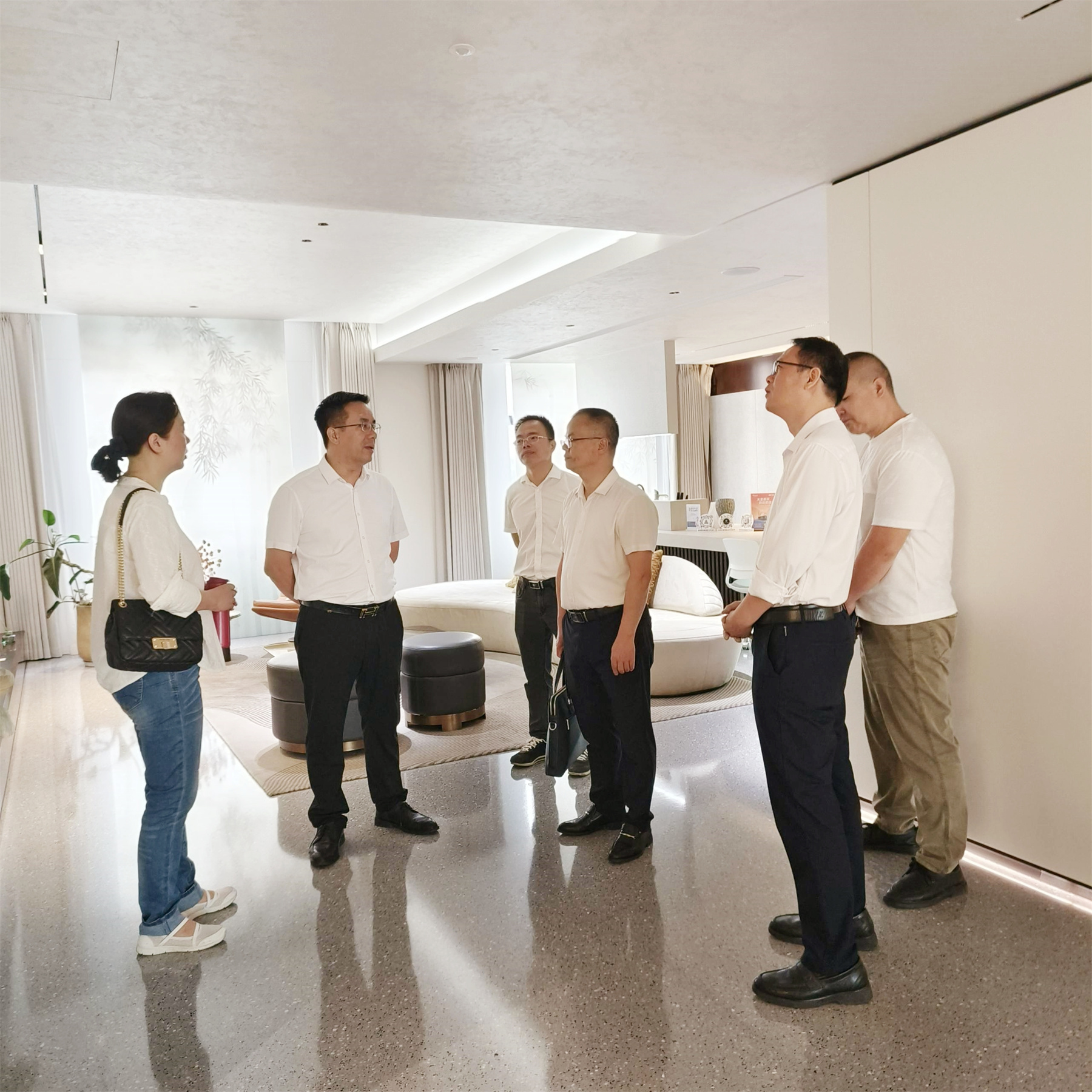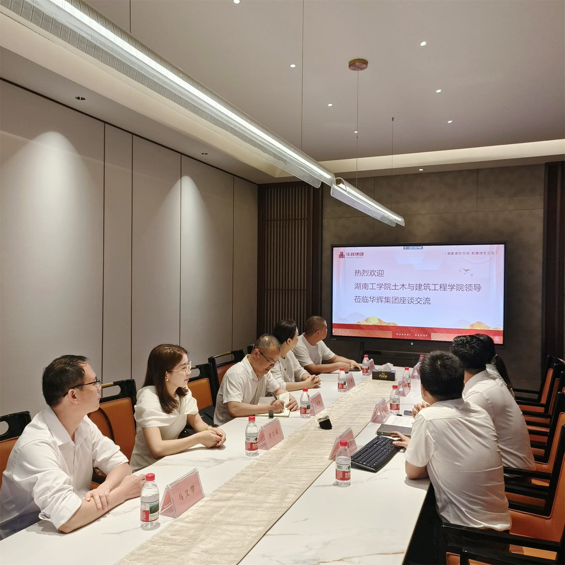 2025年5月6日,湖南工學(xué)院土木與建筑工程學(xué)院院長游春華、智能建造教研室副主任劉賽、工程實(shí)踐教學(xué)中心副主任羅江花等一行領(lǐng)導(dǎo),到訪華輝裝飾集團(tuán)開展校企交流。集團(tuán)董事長楊景忠熱情接待,副總裁覃祖榮,湖南工學(xué)院校友代表、董事長助理兼工程一分公司總經(jīng)理蒙健生陪同接待。