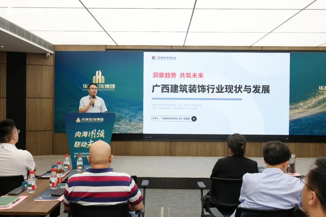 2025年6月6日,“向海圖強(qiáng) · 聯(lián)動(dòng)未來(lái)”——助推廣西建筑裝飾行業(yè)高質(zhì)量發(fā)展暨廣西華輝裝飾集團(tuán)有限公司打造共建共享合作平臺(tái)研討會(huì)圓滿(mǎn)落下帷幕。自治區(qū)商務(wù)廳對(duì)外經(jīng)濟(jì)合作處二級(jí)調(diào)研員張建英,廣西江蘇商會(huì)名譽(yù)會(huì)長(zhǎng)、創(chuàng)會(huì)會(huì)長(zhǎng)單桂林,廣西建筑裝飾協(xié)會(huì)會(huì)長(zhǎng)龐耀國(guó)等領(lǐng)導(dǎo)出席會(huì)議,來(lái)自政府相關(guān)部門(mén)、行業(yè)協(xié)會(huì)、企業(yè)代表等眾多嘉賓齊聚一堂,共同為廣西建筑裝飾行業(yè)的未來(lái)發(fā)展出謀劃策。此次研討會(huì)由廣西建筑裝飾協(xié)會(huì)指導(dǎo),廣西江蘇商會(huì)主辦,廣西華輝裝飾集團(tuán)有限公司承辦。