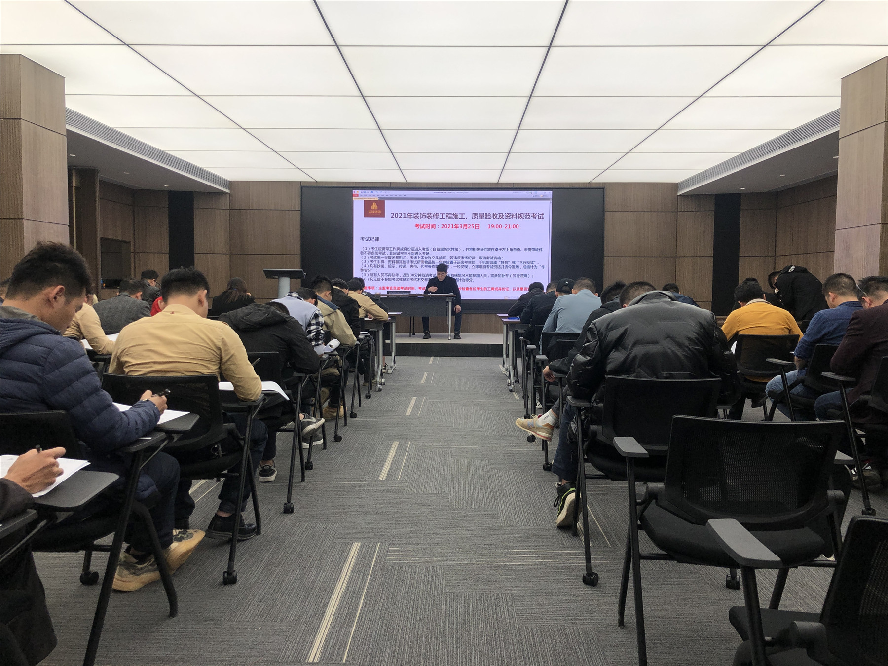2021年3月25日,華輝集團(tuán)開展第二批裝飾裝修施工、質(zhì)量驗(yàn)收及資料規(guī)范考試,進(jìn)一步推動(dòng)集團(tuán)裝飾工程標(biāo)準(zhǔn)化建設(shè),確保項(xiàng)目管理人員深入了解和掌握工程管理標(biāo)準(zhǔn)化要求。